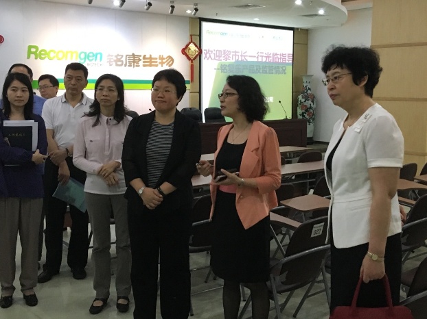 2016年4月26日上午,廣州市副市長黎明一行來我公司進行廣州市藥品安全監管實地調研,陪同視察的有廣州市食品藥品監管局張雅潔局長、鐘廣靜副局長和安全監管處張志鈞處長等。楊琴總經理著重介紹了我司自主研發的生物技術新藥銘復樂的產品特點、應用優勢和技術先進性,指出我司產品是國內首家獲批上市的第三代重組t-PA,是目前唯一可單次靜脈推注的溶栓藥,一針救命,使用方便,適合急救,也是迄今最安全有效的溶栓藥,溶通率高達83%,優于進口對照藥(67%),且顱內出血率更低,安全性更好,匯報了近一年來接受各級藥監部門監管的情況,并帶領參觀了公司獨特的動物細胞連續培養生產線、重組蛋白分離純化生產線和研發車間。黎副市長對公司在新藥研發方面取得的成績表示肯定。隨后,黎副市長、張局長等一行調研人員和公司主要領導班子進行了座談,深入了解銘復樂銷售情況、人才引進模式以及公司目前面臨的困難和問題等,并要求隨行人員對企業的困難和建議及時整理上報。
