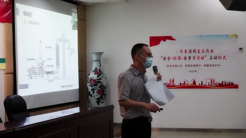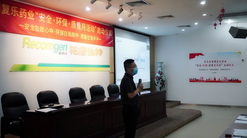 2022年5月9日上午11點,明復樂藥業首屆“安全 環保 質量月”活動在公司A1會議室正式啟動。
